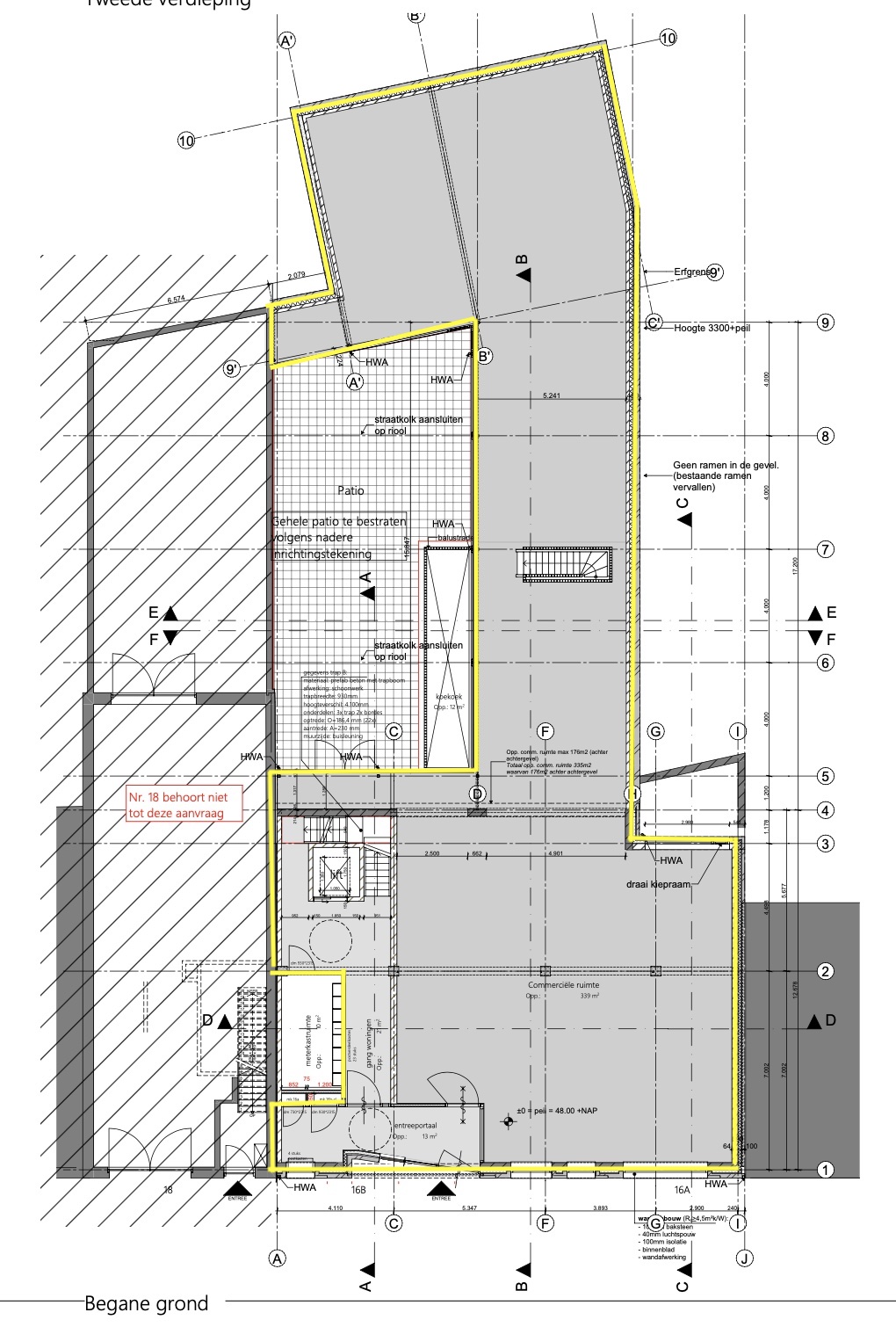 Indeling : ca. 320 m² BVO winkelruimte op begane grond met pantry en toiletruimte alsmede secundaire ruimte in het souterrain (ca. 40 m²) en gebruik van de patio (in overleg).